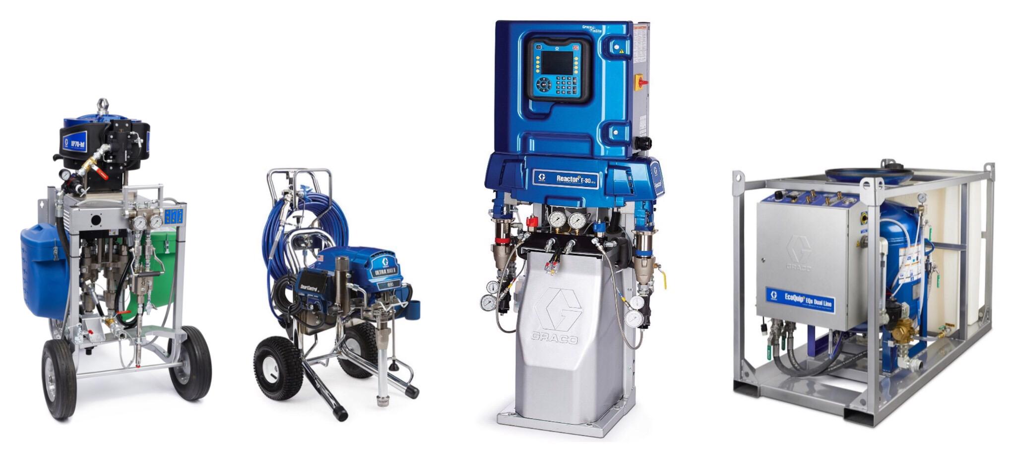 Đặc biệt, chúng tôi ưu tiên sử dụng các dòng thiết bị từ thương hiệu danh tiếng Graco (Hoa Kỳ) – được biết đến rộng rãi trong ngành nhờ khả năng thi công ổn định, chính xác và linh hoạt. Các thiết bị Graco được thiết kế đặc biệt để phun phủ các hệ vật liệu như polyurea nguyên chất, foam polyurethane, vật liệu polyurethane chuyên dụng, và các loại sơn kỹ thuật